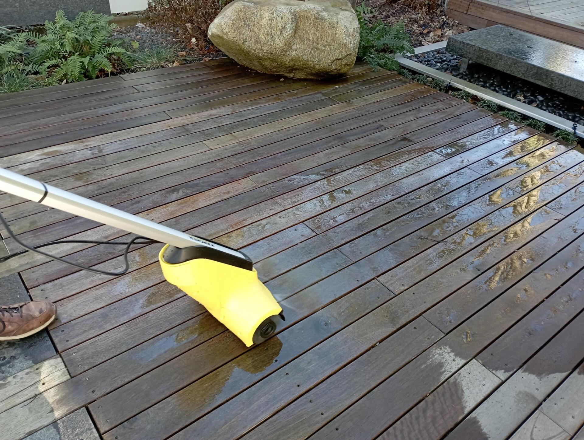 Bei uns können Sie ein Terrassenreinigungsgerät ausleihen und ohne sich bücken zu müssen, Ihre Terrassendielen reinigen. Einfach den FAXE Terrassenreiniger aufbringen und dann mit der elektrischen Bürste darübergehen. Mit dem LEINOS Entgrauer kann der Vergrauungseffekt der Terrassehölzer entfernt werden. Wenn die Dielen abgetrocknet sind, ist es sinnvoll ein Terrassenöl aufzutragen. Die Materialien hierzu bekommen Sie allesamt in unserem ökologischen Baumarkt. Wenn Sie noch Fragen haben, dann wenden Sie sich an unser Baumarktteam.
